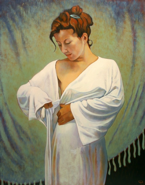 Peter Hoogerwerf - schilderijen - Vrouw met badjas